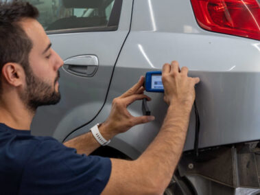 Der Farbton wird mit Genius direkt auf der gereinigten Fahrzeugkarosserie nahe der